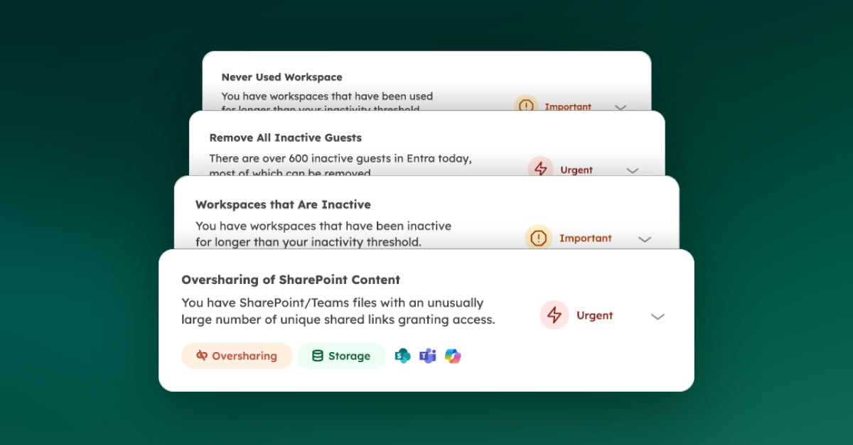 - Workspace Review Continuously automate and delegate recalibration of SharePoint sites and Teams.
